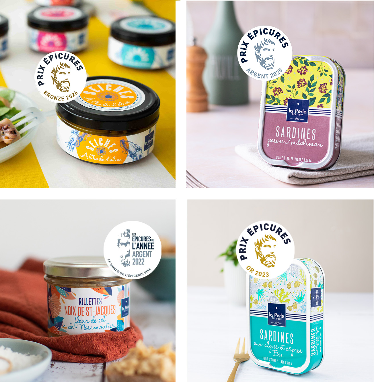 Après l’Épicure d’argent remporté en 2022 pour nos rillettes de noix de Saint-Jacques à la fleur de sel de Noirmoutier, l’Épicure d’or en 2023 pour nos sardines aux algues et câpres bio, puis l’Épicure d’argent en 2025 pour nos sardines au poivre d’Andaliman, tous dans la catégorie « Produits de la mer », nous poursuivons l’aventure cette année avec une nouvelle création : nos tapas de seiches à l’huile d’olive.